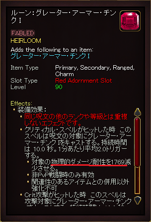 もともと物理を下げてくれる青文字効果やwarルーンは少なく、思いつくもので代表的なものというと、こちら