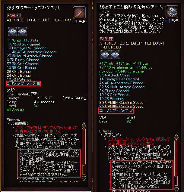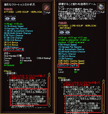 すでに、コロウシヴ・フォグがついているアクセを装備しているのに、ドラチャレでゲットした武器にもコロウシヴ・フォグが・・・この青文字効果がついたものを2個も装備するのはもったいない気がしてならないのです。