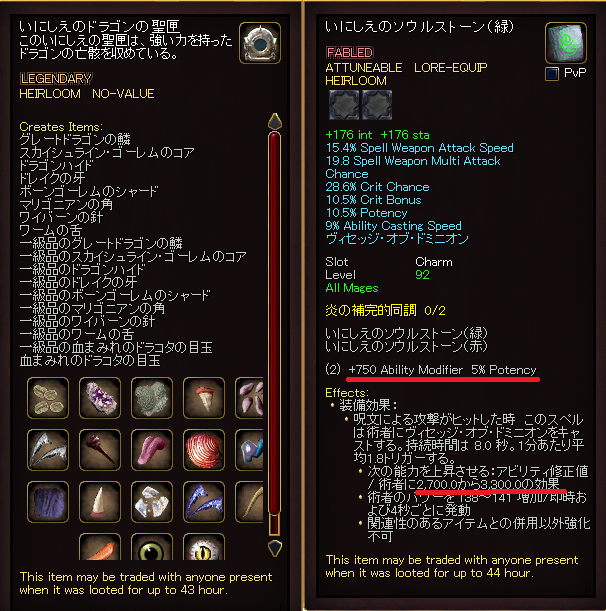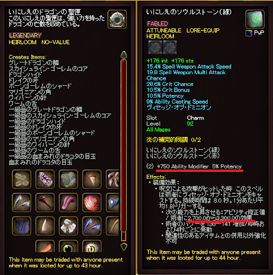 チャームですが、procのmod上昇値もさることながら、セット効果もいいですね。modに加えてpotencyも5アップ。揃うのはいつになるかわかりませんが、これでSTに通う楽しみができました。